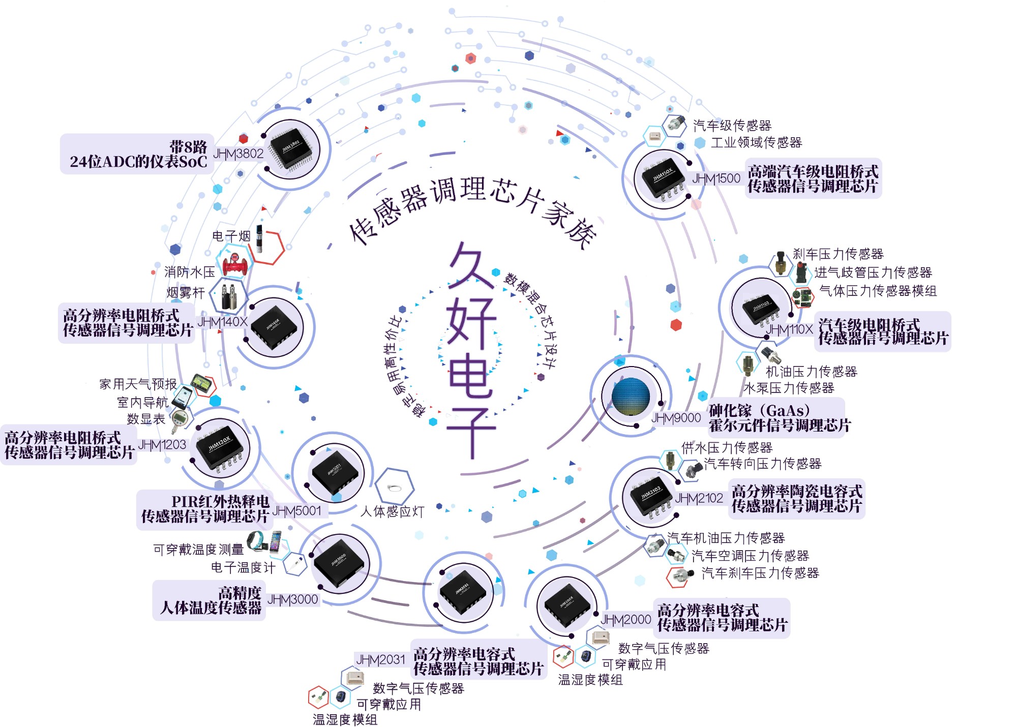 北京久好電子科技有限公司創(chuàng)立于2014年,核心創(chuàng)業(yè)團隊為一批清華集成電路校友。公司專注于數(shù)模混合SoC芯片的設計開發(fā),已量產的傳感器信號調理芯片系列已經(jīng)廣泛應用于壓力、溫濕度、紅外熱釋電(PIR)、溫度和電流等傳感器領域,尤其是在車用壓力傳感器領域取得卓越成果。公司在超低功耗數(shù)模混合集成電路設計、低功耗SoC系統(tǒng)設計、大批量量產系統(tǒng)與信號調理芯片的應用軟件開發(fā)等領域積累了豐富的經(jīng)驗,能快速地為合作伙伴提供具有世界競爭力的芯片技術及完整解決方案。